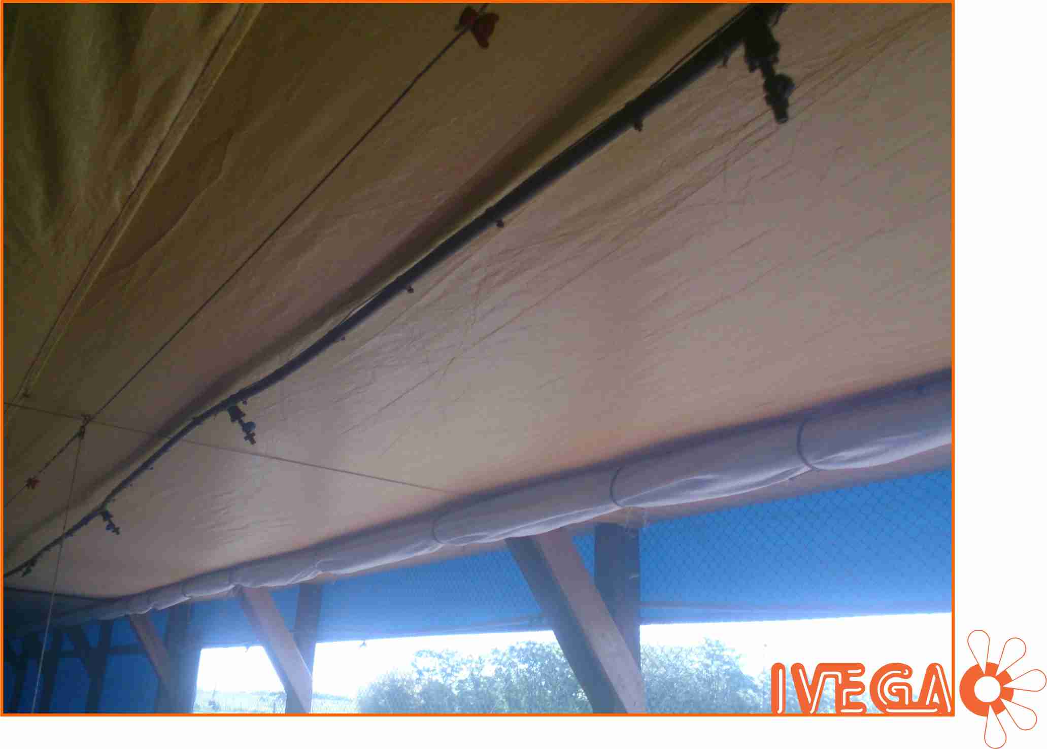 Para reducir el estrés calórico de las aves IVEGA recomienda acompañar al sistema de ventilación con un sistema de refrigeración. Una vez que el aire sobrepasa la temperatura de 32ºC su movimiento a través de las aves ya no las refresca y puede acalorarlas más. En cambio los picos de refrigeración inyectan en el aire agua que al evaporarse reducen la temperatura. El enfriamiento evaporativo depende de la humedad ambiente inicial y del tamaño de las gotitas difuminadas. IVEGA recomienda utilizar picos que proporcionan 7 L/h, trabajando a 4,5 Kg de presión, produciendo gotas lo suficientemente pequeñas como para facilitar su evaporación y no mojar la cama.