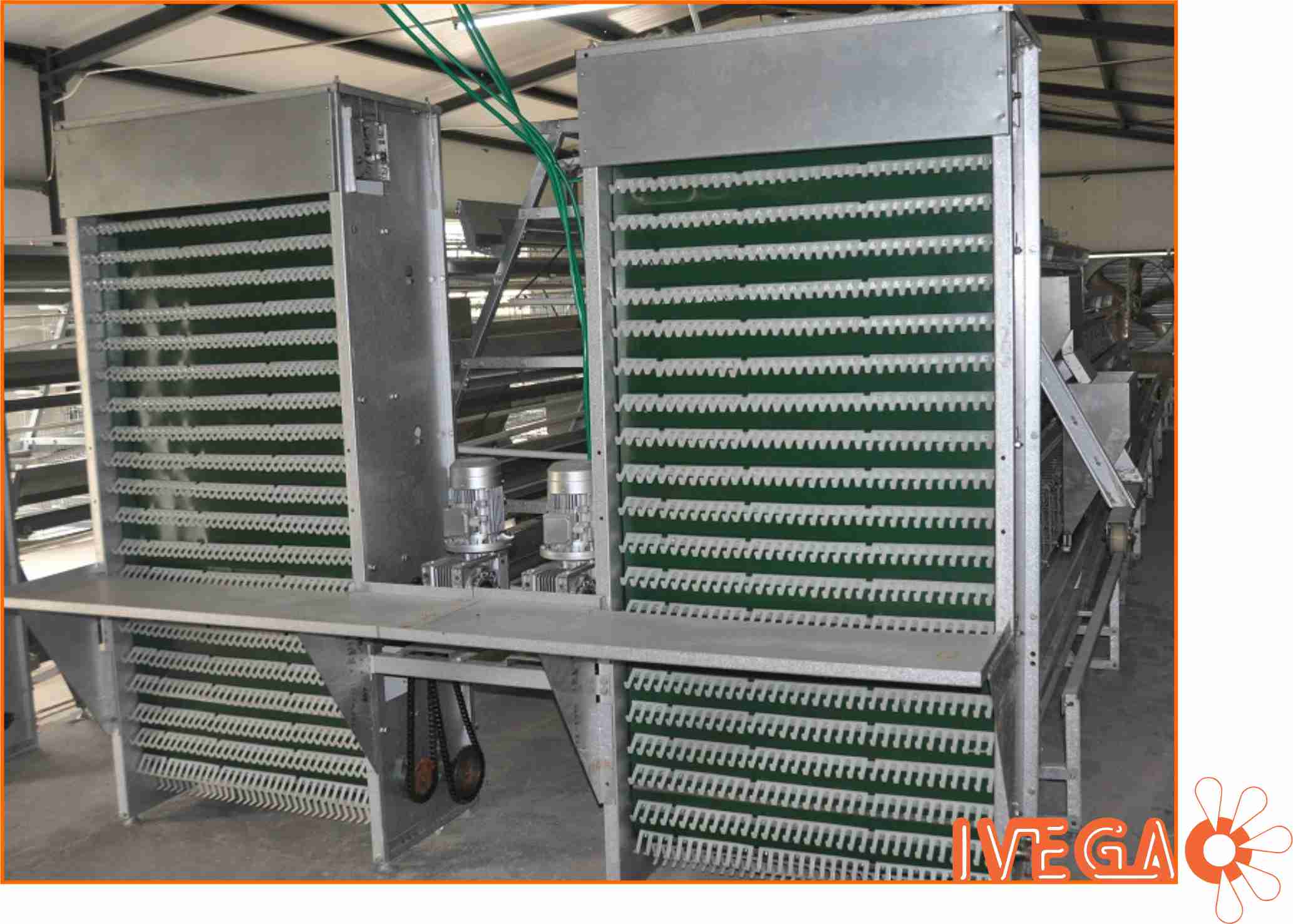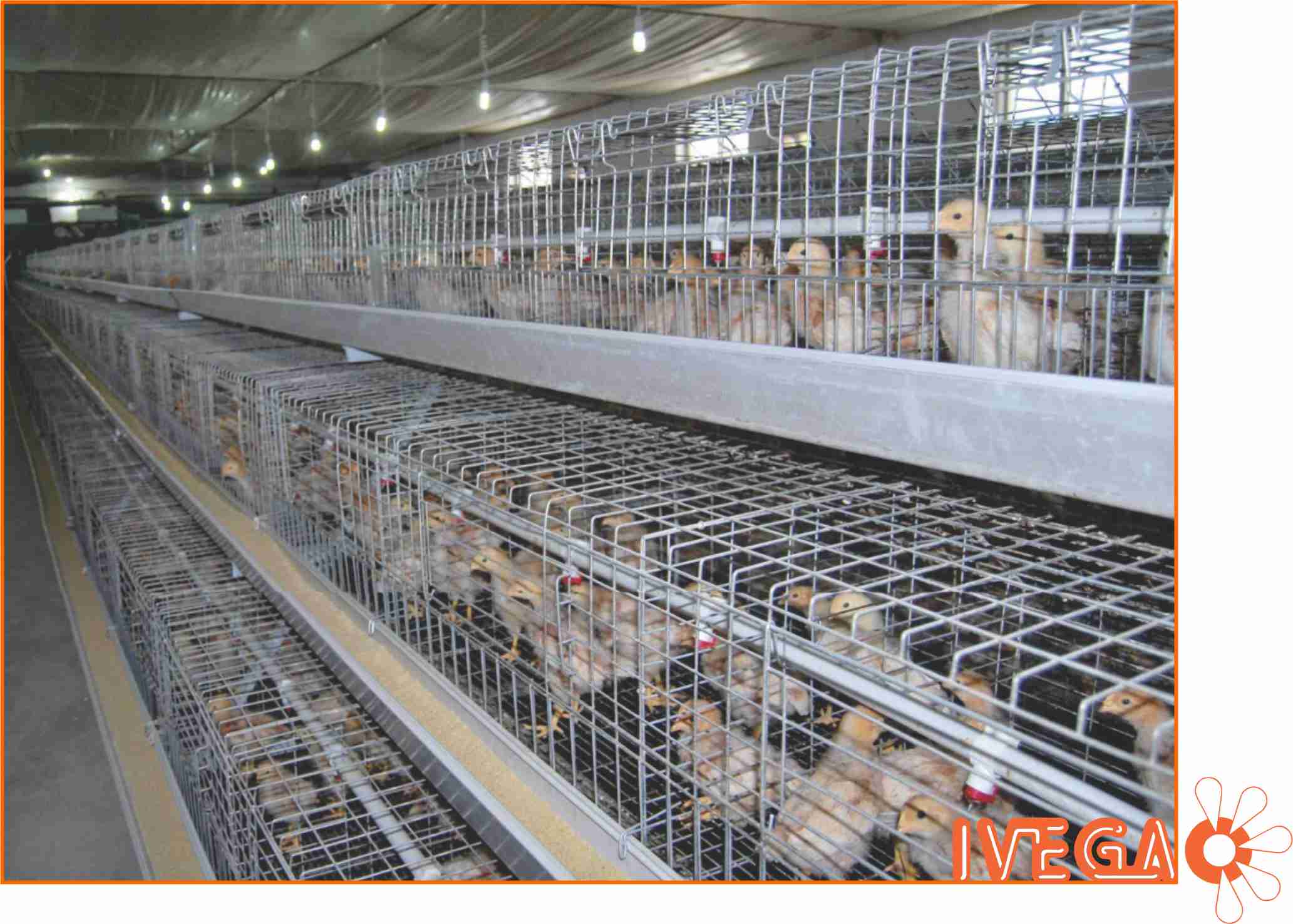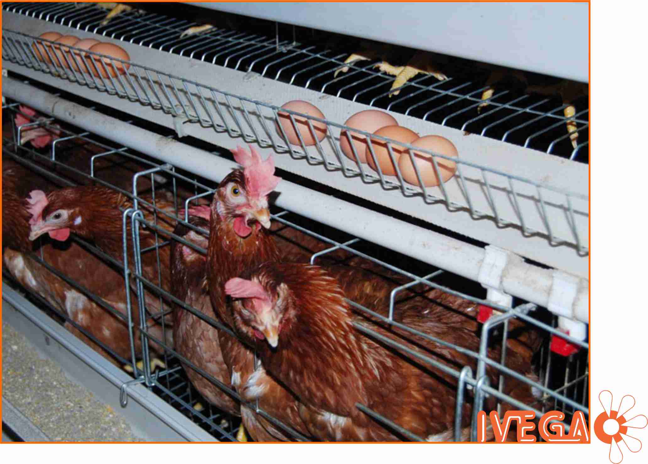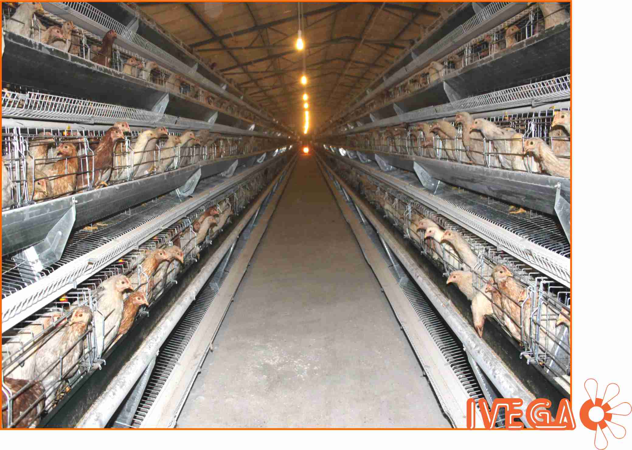 Para una producción de huevos a escala industrial, rentable y eficiente, IVEGA ofrece una gama de baterías abiertas tipo “A” en 3 y 4 pisos para gallinas de postura. Dichas jaulas poseen sistema de recolecta automática de huevos, alimentación automática que incluye el silo, el alimentador transversal y el sistema de reparto interior con carretillas automáticas. Para mejorar el ambiente del galpón y evitar una acumulación excesiva de polvo y amoniaco, también ofrecemos el sistema automático de retirada de guano por palas y el sistema de ventilación y enfriamiento con extractores y paneles evaporativos.
